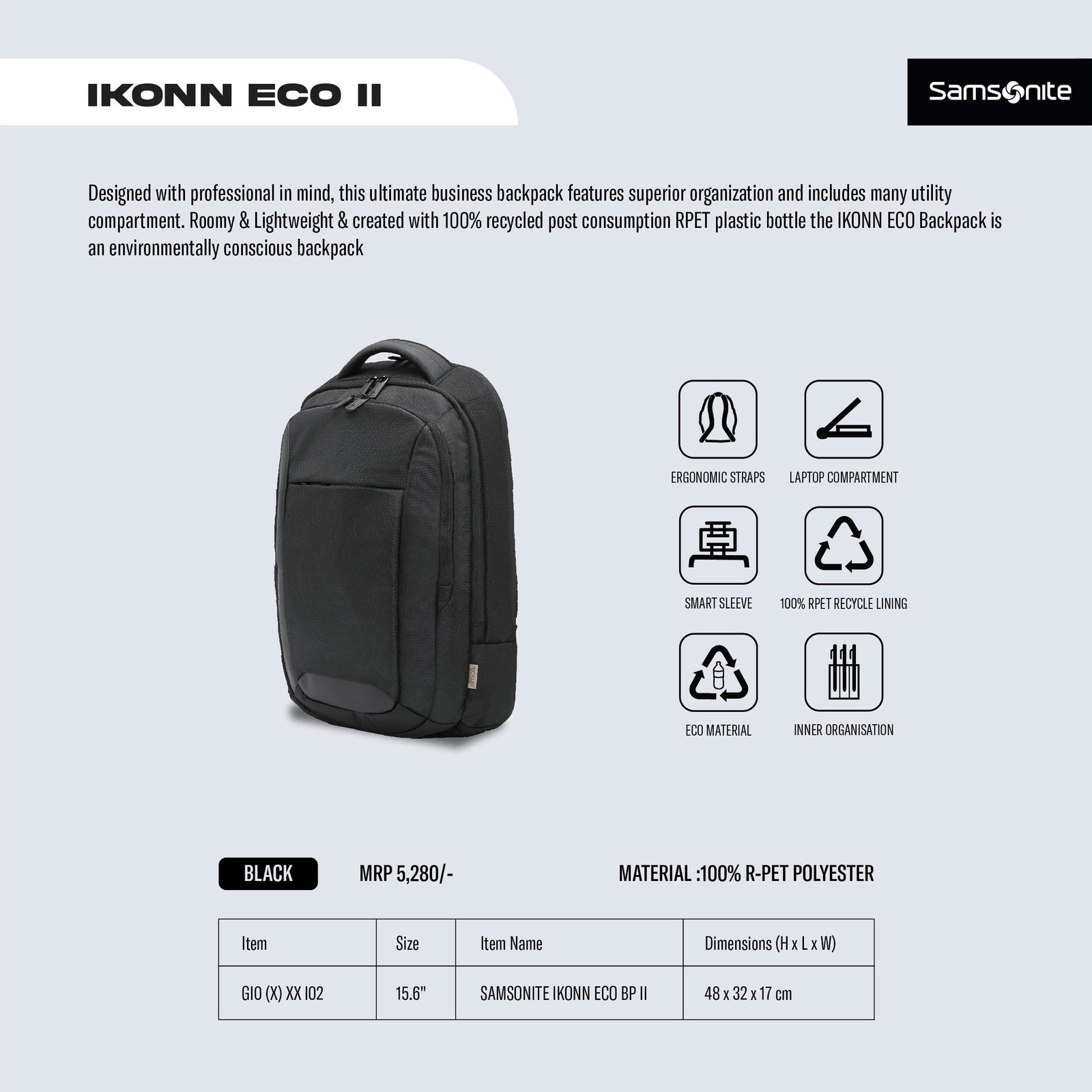 Samsonite ensures maximum protection for your tech essentials with:- Suspended padded laptop compartment (13.3”–17”) with EVA foam